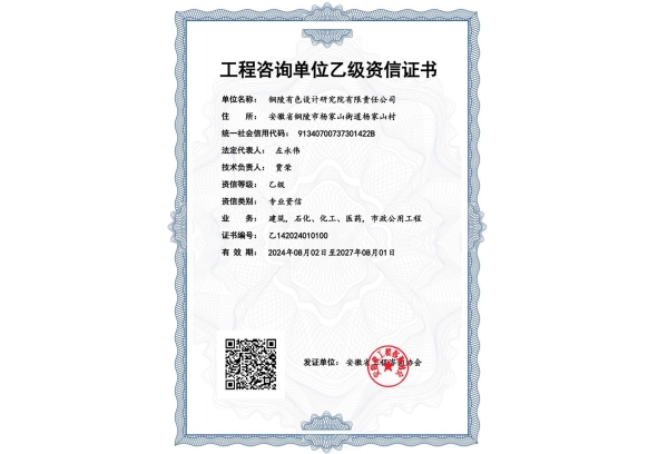 銅陵有色設計研究院有限責任公司(原銅陵有色設計研究院,以下簡稱“銅陵有色設計院”)成立于1956年,具有冶金行業工程設計甲級資質,建筑行業(建筑工程)、市政行業(道路工程、環境衛生工程)專業乙級設計資...